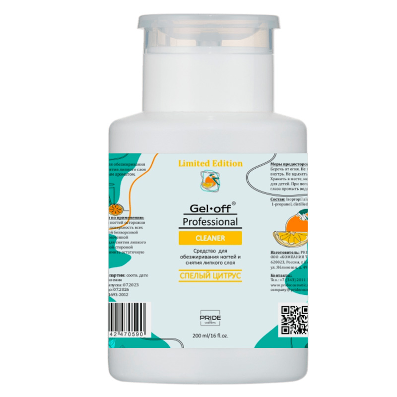 Средство д/обезжиривания ногтей и снятия липкого слоя Спелый цитрус (помпа), 200мл GEL OFF Proff_30.09.2026!!!