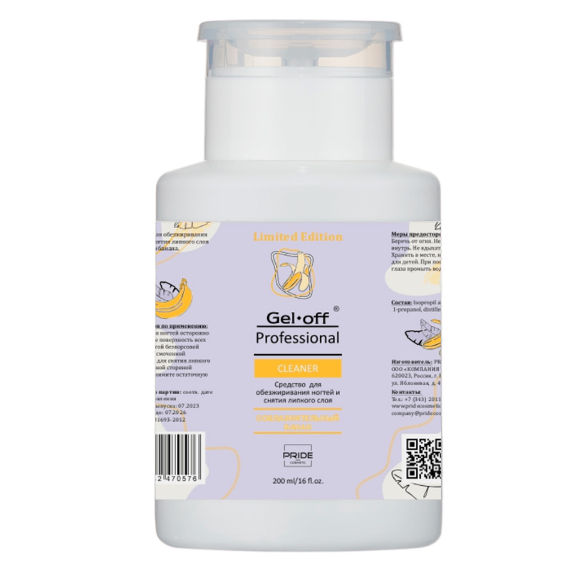 Средство д/обезжиривания ногтей и снятия липкого слоя Соблазнительный банан (помпа), 200мл GEL OFF Proff_31.07.2026!!!