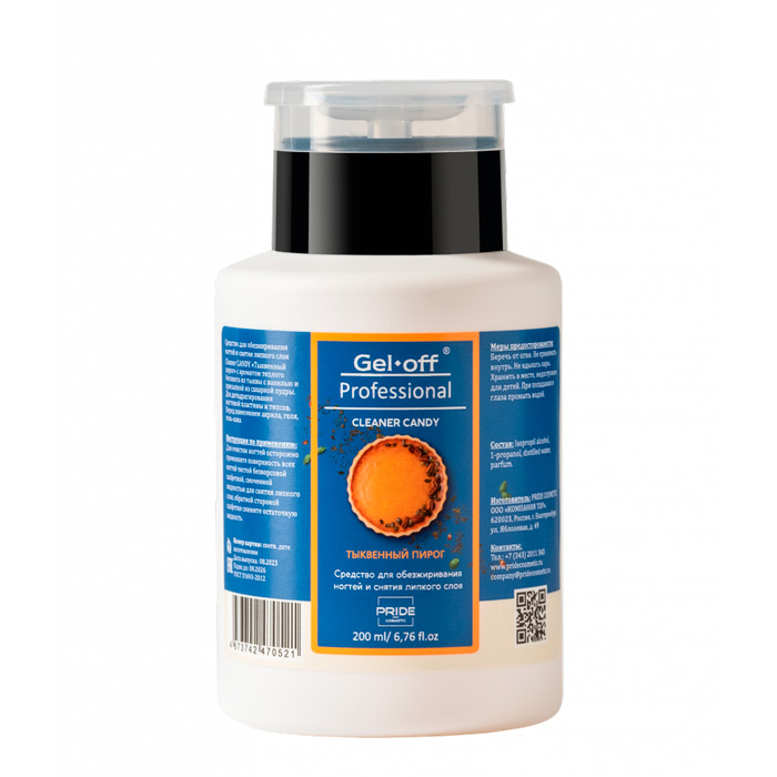 Средство д/обезжиривания ногтей и снятия липкого слоя Тыквенный пирог (помпа), 200мл GEL OFF Proff_31.08.2026!!!