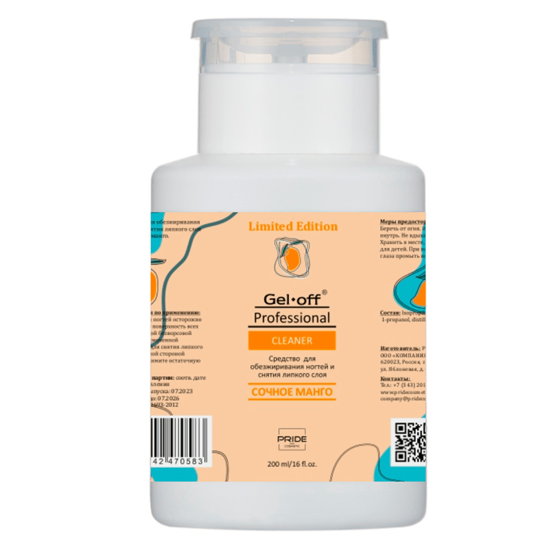 Средство д/обезжиривания ногтей и снятия липкого слоя Сочное манго (помпа), 200мл GEL OFF Proff_31.07.2026!!!