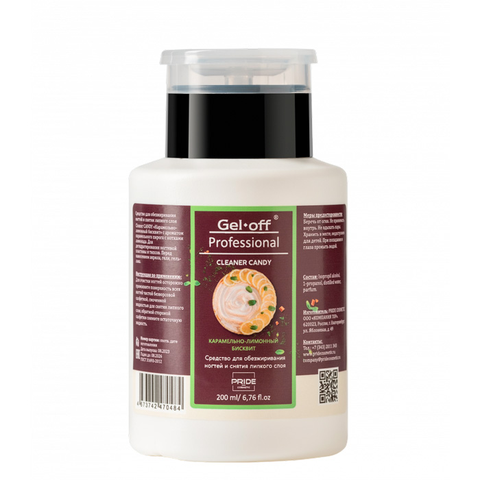 Средство д/обезжиривания ногтей и снятия липкого слоя Карамельно-лимонный бисквит (помпа), 200мл GEL OFF Proff_30.09.2026!!!